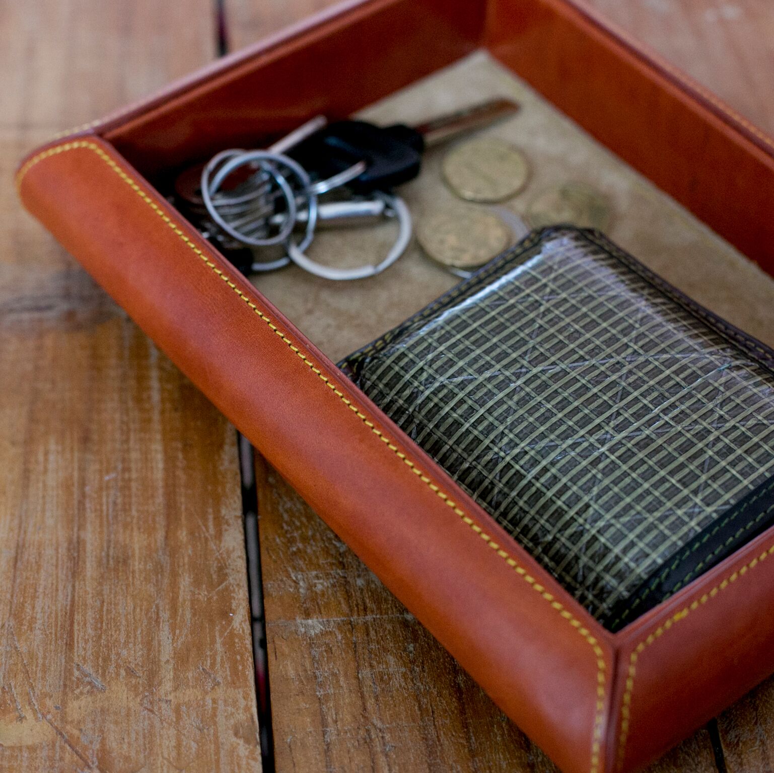 Enrile produce de forma artesanal este vacía bolsillos, utilizando para ello cuero vacuno de primera 100% vegetal.